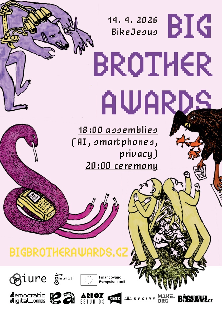 Další, v pořadí již jednadvacátý ročník našich Cen Velkého bratra, bude v úterý 14. dubna 2026 v pražském klubu Bike Jesus. Více info na www.bigbrotherawards.cz