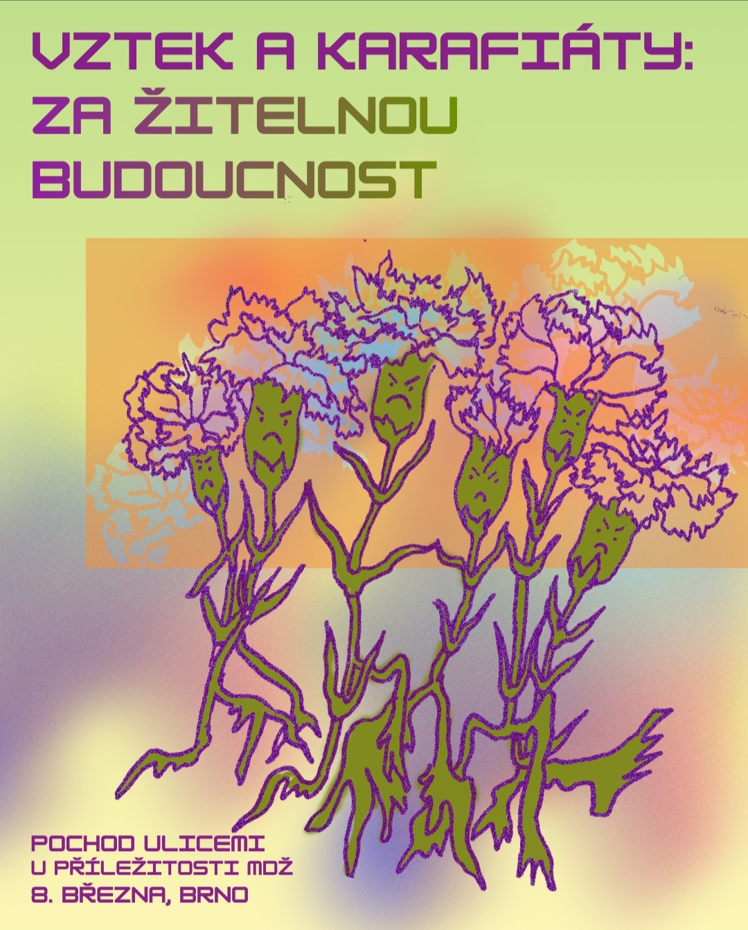 Sdruženy i tento rok organizují protestní pochod u příležitosti MDŽ. Letošní téma je "Vztek a karafiáty: za žitelnou budoucnost". Chceme vyjádřit naštvanost a vzdor proti propojeným systémům útlaku, které se aktuálně výrazně projevují nárůstem fašismu, třídního útlaku, queerfobie, imperiálního násilí a ústí i v právě probíhající genocidy. MDŽ pro nás znamená Mám Dost Žalu (nad oběťmi systémů útlaku) a Mám Dost Živoření (v této kapitalistické dystopii). Na pochodu bude několik zastavení s hoststvem z různorodých odvětví boje proti útlaku, které budeme postupně představovat. Bude to naštvané, radikální a budeme v tom společně. Chceme chleba i růže!